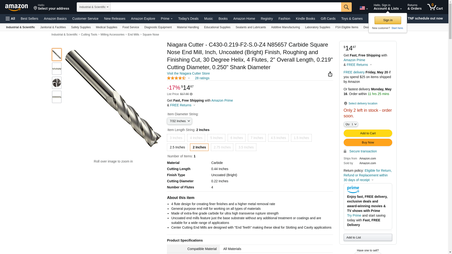 Niagara Cutter N85657 Carbide Square Nose End Mill inch Uncoated (Bright) Finish Roughing and Finishing Cut 30 Degree Helix 4 Flutes 2 Overall Length 0.219 Cutting Diameter 0.250 Shank Diameter