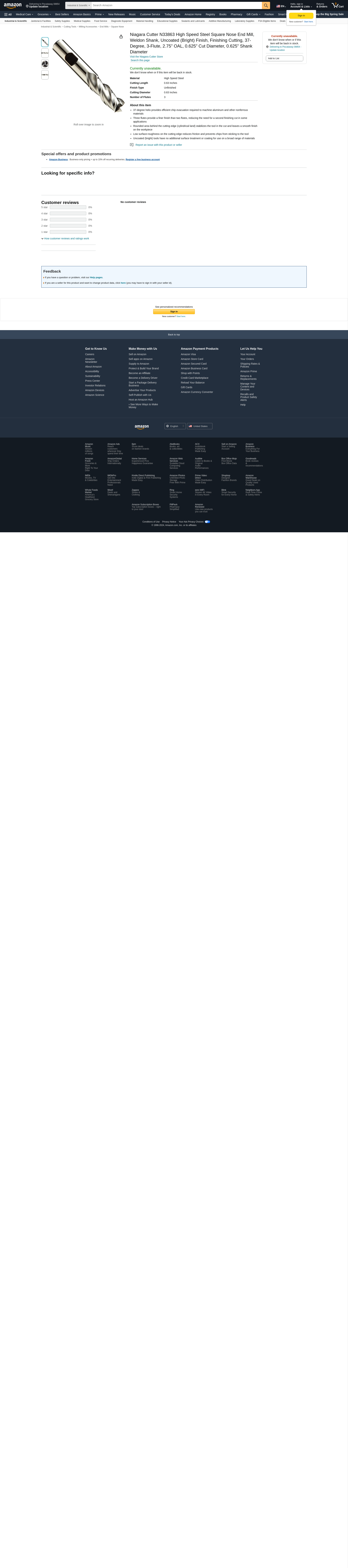 Niagara Cutter N33863 High Speed Steel Square Nose End Mill, Weldon Shank, Uncoated (Bright) Finish, Finishing Cutting, 37-Degree, 3-Flute, 2.75" OAL, 0.625" Cut Diameter, 0.625" Shank Diameter