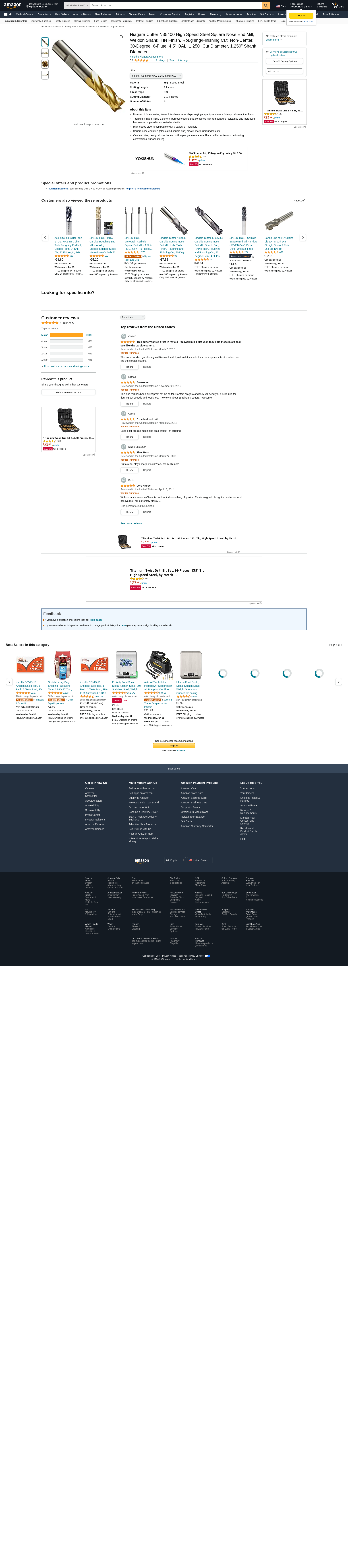 Niagara Cutter N35218 High Speed Steel Square Nose End Mill, Weldon Shank, TiN Finish, Roughing/Finishing Cut, Non-Ce...