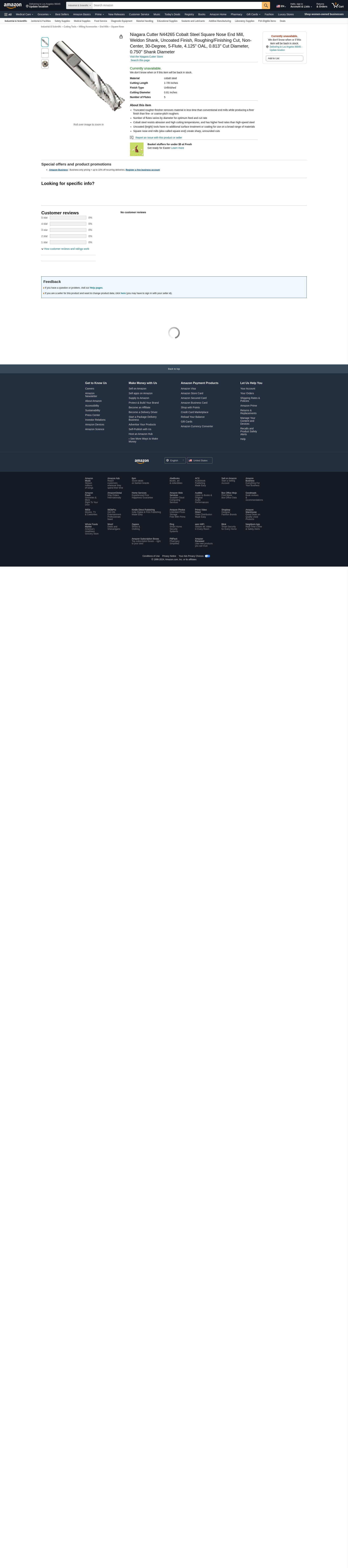 Niagara Cutter N44265 Cobalt Steel Square Nose End Mill, Weldon Shank, Uncoated Finish, Roughing/Finishing Cut, Non-C...