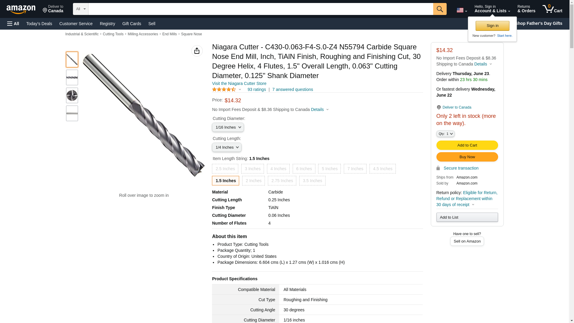 Niagara Cutter N55794 Carbide Square Nose End Mill Inch TiAlN Finish Roughing and Finishing Cut 30 Degree Helix 4 Flutes 1.5 Overall Length 0.063 Cutting Diameter 0.125 Shank Diameter