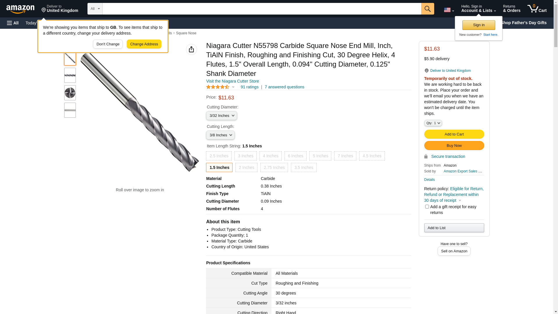 Niagara Cutter N55798 Carbide Square Nose End Mill, Inch, TiAlN Finish, Roughing and Finishing Cut, 30 Degree Helix, 4 Flutes, 1.5" Overall Length, 0.094" Cutting Diameter, 0.125" Shank Diameter