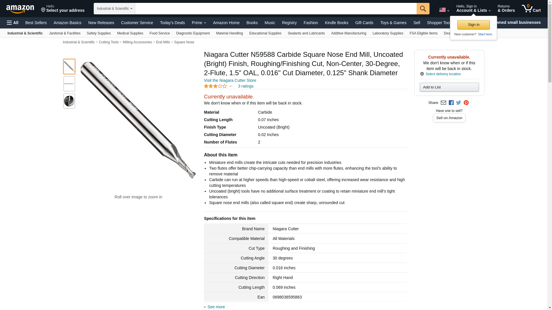 Niagara Cutter N59588 Carbide Square Nose End Mill Uncoated (Bright) Finish Roughing/Finishing Cut Non-Center 30-Degree 2-Flute 1.5 OAL 0.016 Cut Diameter 0.125 Shank Diameter