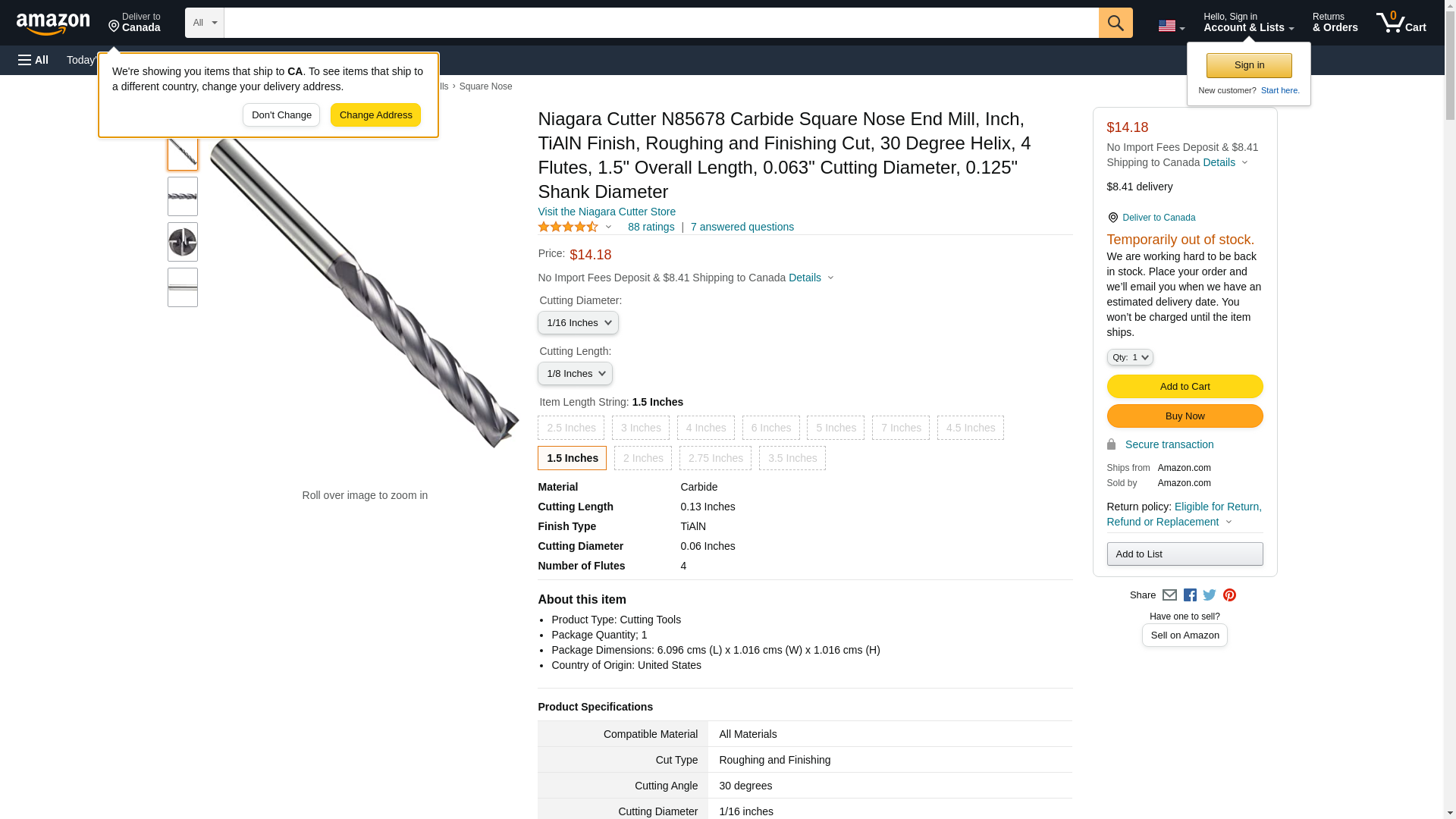 Niagara Cutter 17005469 Carbide Square Nose End Mill, Inch, TiAlN Finish, Roughing and Finishing Cut, 30 Degree Helix, 4 Flutes, 1.5' Overall Length, 0.063' Cutting Diameter, 0.125' Shank Diameter