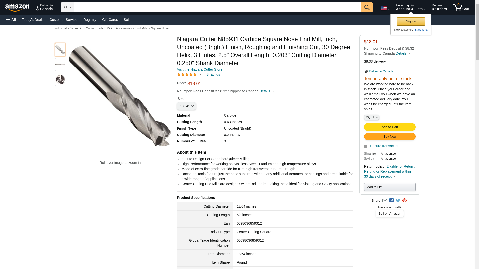 Niagara Cutter N85931 Carbide Square Nose End Mill, Inch, Uncoated (Bright) Finish, Roughing and Finishing Cut, 30 De...