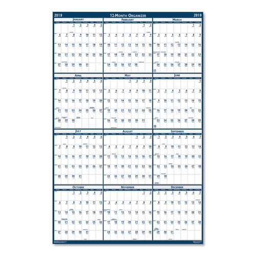 NIB & NISH 6008027 Two-Sided Dry Erase Wall Calendar, White