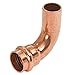 The Nibco Press System copper 90degree elbow features an inboard bead and EPDM Oring. Simply applying pressure from a pressing tool tightens the Oring onto the tube, ensuring a clean, watertight seal in seconds with no flame, solder or flux. The elbow has press connections. The fitting provides a method of changing the pipeline direction by 90 degrees. Features. Dezincification resistant. ASTM B75 alloy C12200 copper. Complies with ASME B16/51 performance. Third party certified to the performance requirements of CSA MSE 13 and PS117Specifications. Size 0.5 FTG x 0.5 in.. Material Copper. Product Type 90 Degree Elbow. Underground Rated No. Brand Name Nibco. End 1 Diameter 1/2. End 1 Type FTG. End 2 Diameter 1/2. End 2 Type Press. Maximum Working Pressure 200. Maximum Working Temperature 250. NSF Listing No. Country of Origin United States. Weight 0.12 lbs