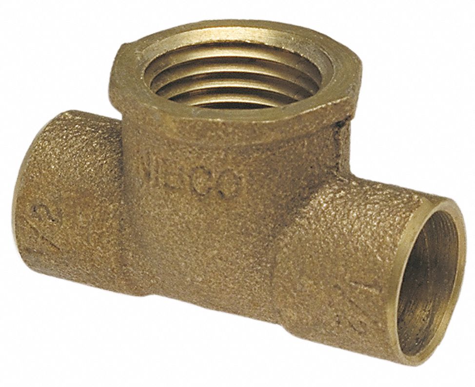 - <b>Price For:</b> Each <b>Temp. Range</b>: -20 Degrees to 200 Degrees F <b>Specific Fitting Shape</b>: Reducing Tee <b>Basic Fitting Material</b>: Metal <b>Tube Fitting Material</b>: Low Lead Cast Bronze <b>Item</b>: Reducing Tee <b>Basic Fitting Shape</b>: Tee <b>Standards</b>: ASTM B584 Alloy C87850; ASME B16.15 Design Standards; Third-Party Certified To NSF/ANSI 61 Annex G <b>Fitting Connection Type</b>: C x C x FNPT <b>Pipe Size (Fittings)</b>: 3/8"