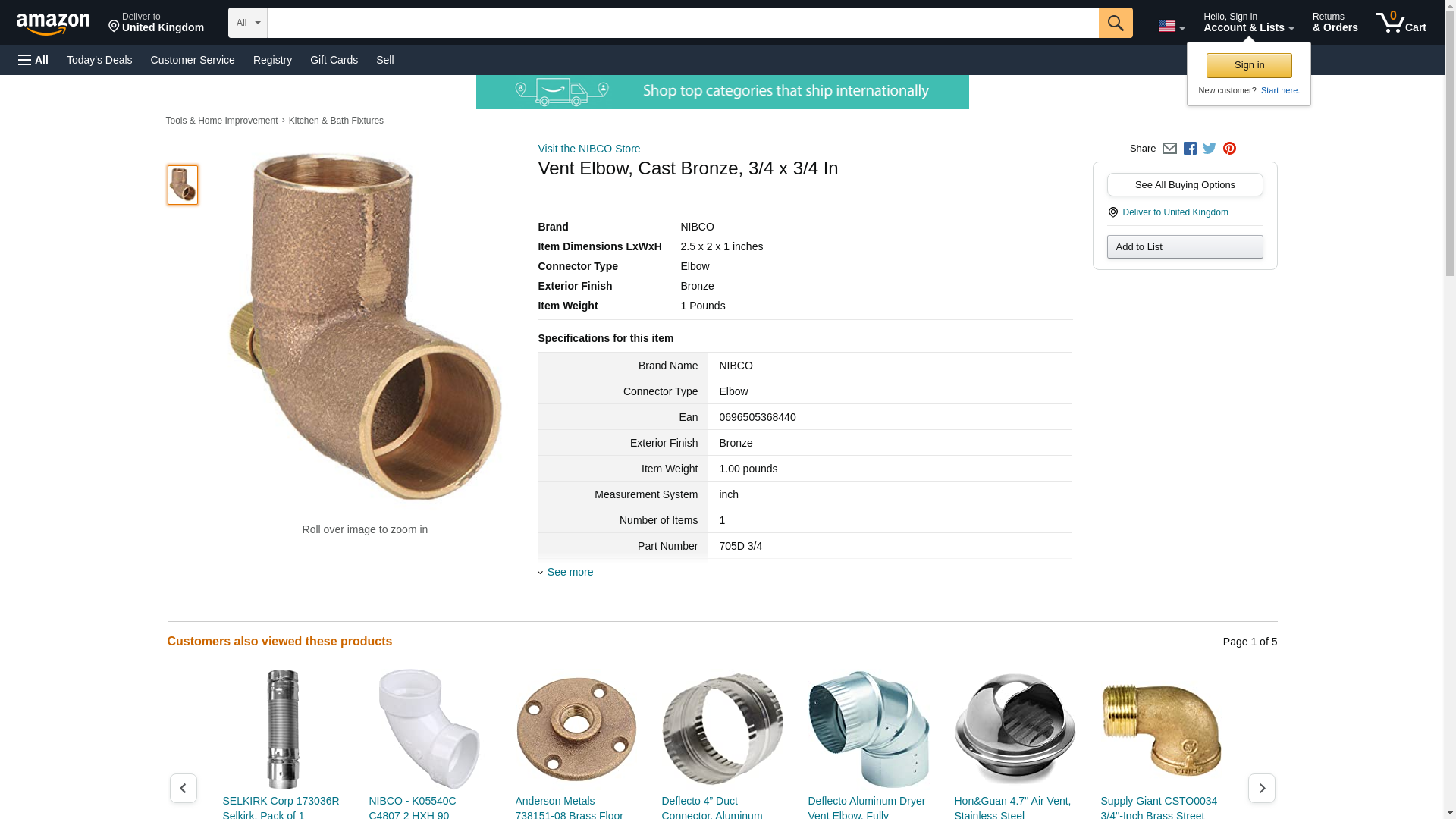 | Feature | Price For: Each Standards: ASME B16.18 Fitting Connection Type: C x C Tube Fitting Material: Cast Bronze Basic Fitting Material: Metal Basic Fitting Shape: Elbow Item: Vent Elbow Specific Fitting Shape: Elbow Temp. Range: -20 Degrees to 400 Degrees F Max. Pressure: 466 psi@200 Degrees F Tube Size: 3/4" Outside Dia.: 7/8" Country of Origin (subject to change): United States |