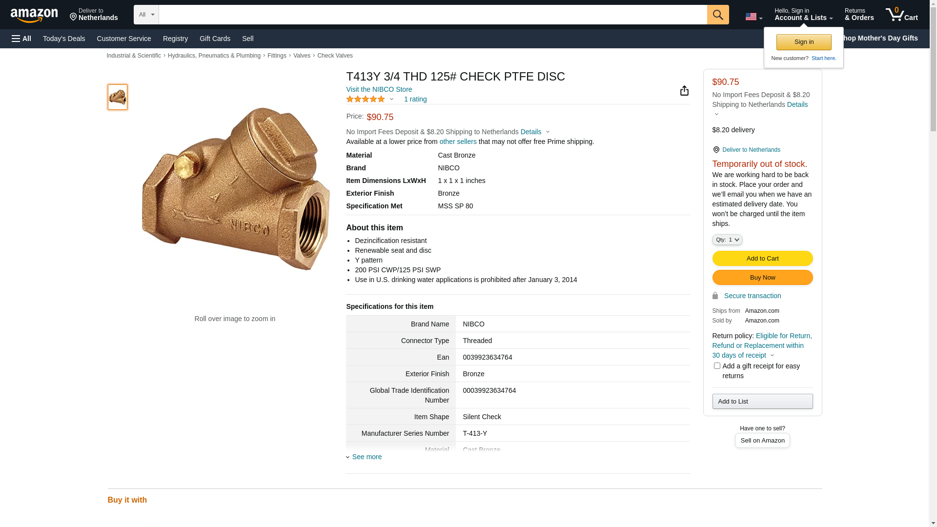 | kscdirect.com | NIB T413Y 3/4 | 1 | 1 | 1 @ $124.12 | |