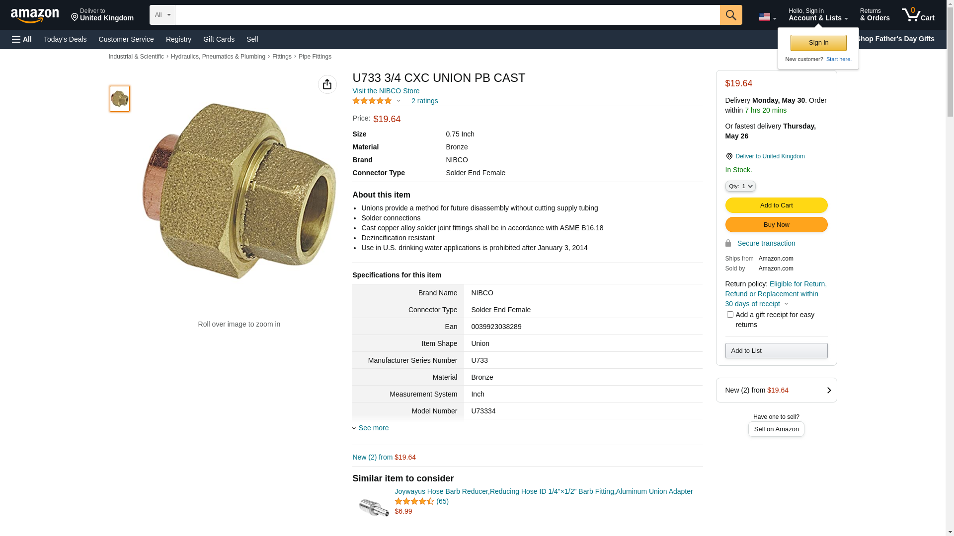 NIBCO 733 Series BRZ Cast Bronze Union , 3/4" Solder End Female. Unions provide a method for future disassembly witho...