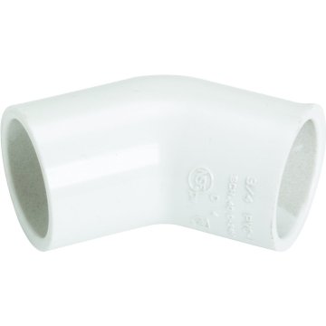 NIBCO 417 Series PVC Pipe Fitting, 45 Degree Elbow, Schedule 40, 3/4" Slip. 45-degree elbow for connecting two pipes ...