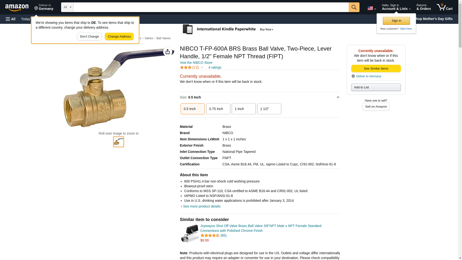 "NIBCO, INC." TFP600A12 NIBCO T-FP-600A BRS Brass Ball Valve, Two-Piece, Lever Handle, 1/2" Female NPT Thread (FIPT)