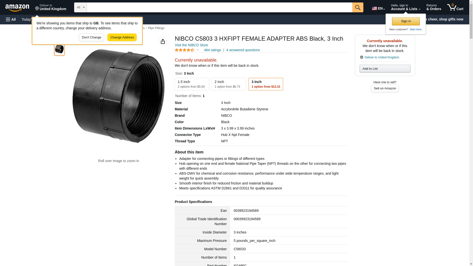 NIBCO 5803 ABS Pipe Fitting, Adapter, Schedule 40, 3" Hub x 3" NPT Female. Adapter for connecting pipes or fittings o...