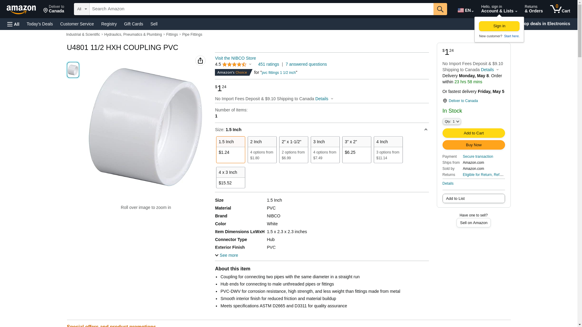 NIBCO 4801 Series PVC DWV Pipe Fitting, Coupling, 1-1/2" Hub. Coupling for connecting two pipes with the same diamete...