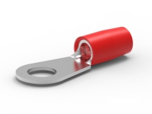 RING TERMINAL/7.94 mm stud/tab size, female, insulated, red, tin plating, copper material, nylon insulation. 324 series. For use with 8 gauge wire.