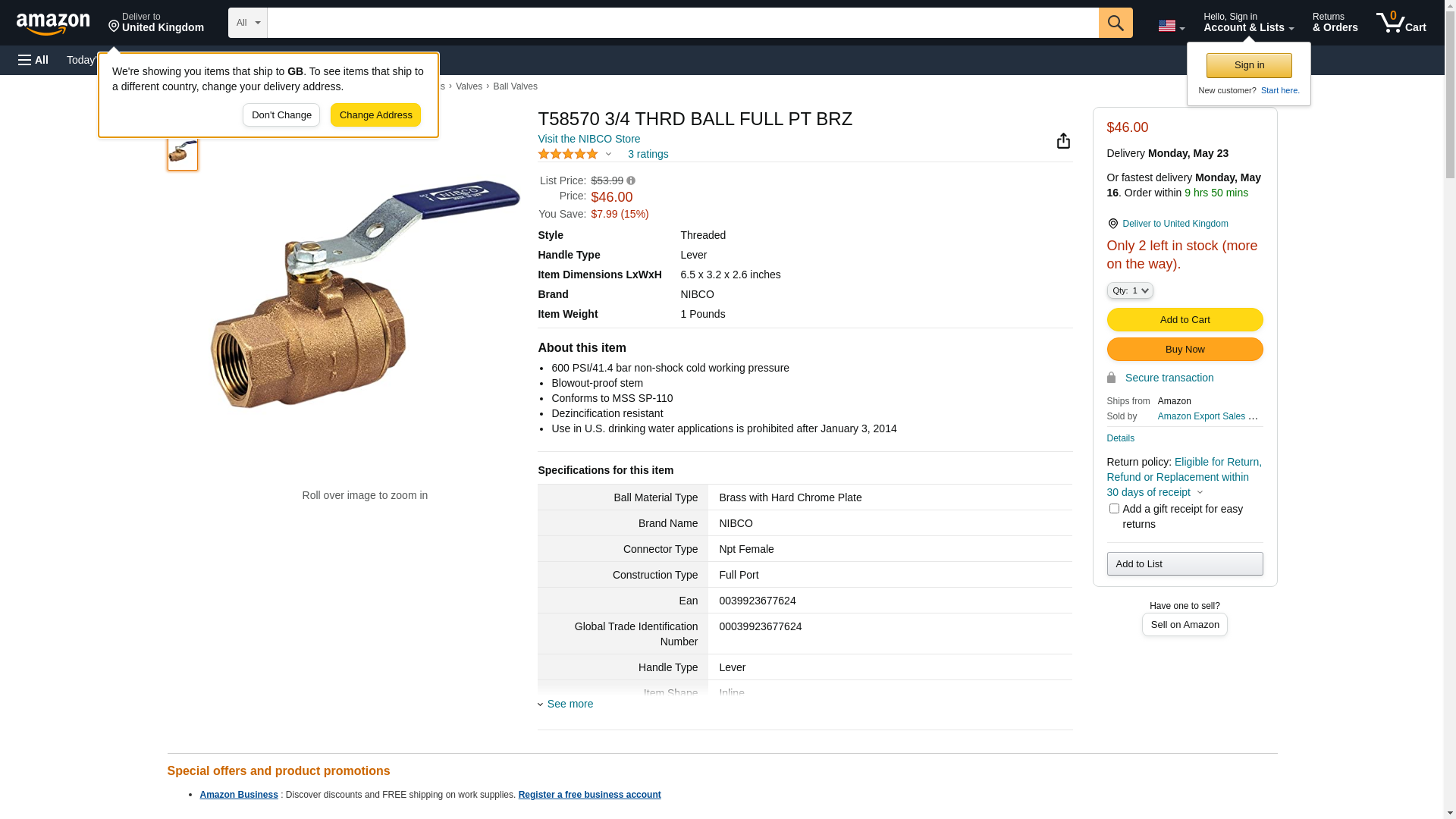 | kscdirect.com | NIB T585-70 3/4 | 1 | 1 | 1 @ $45.26 | |