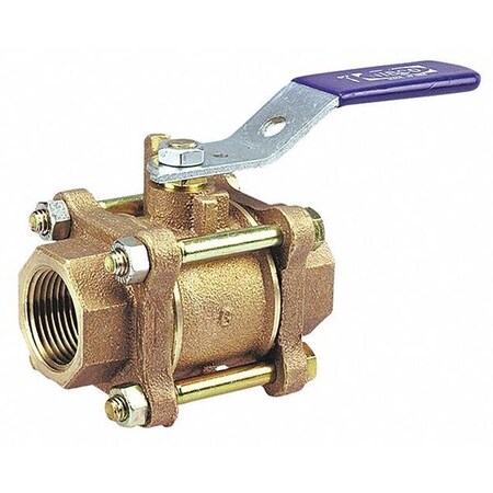 NIBCO T-595-Y Cast Bronze Ball Valve, Three-Piece, Lever Handle, 1-1/4" Female NPT Thread (FIPT)