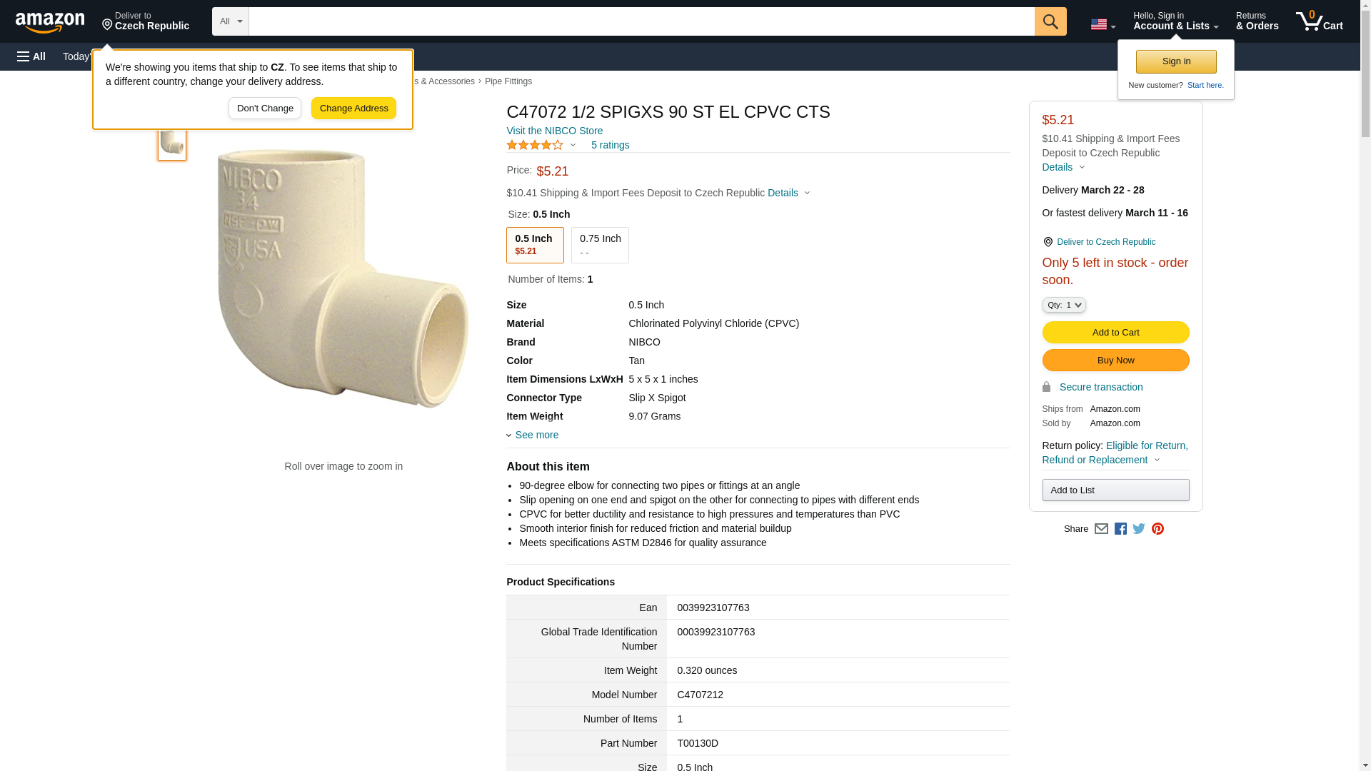 Nibco T00130D 1/2 Cpvc 90 Degree Street Elbow (039923107763-2)