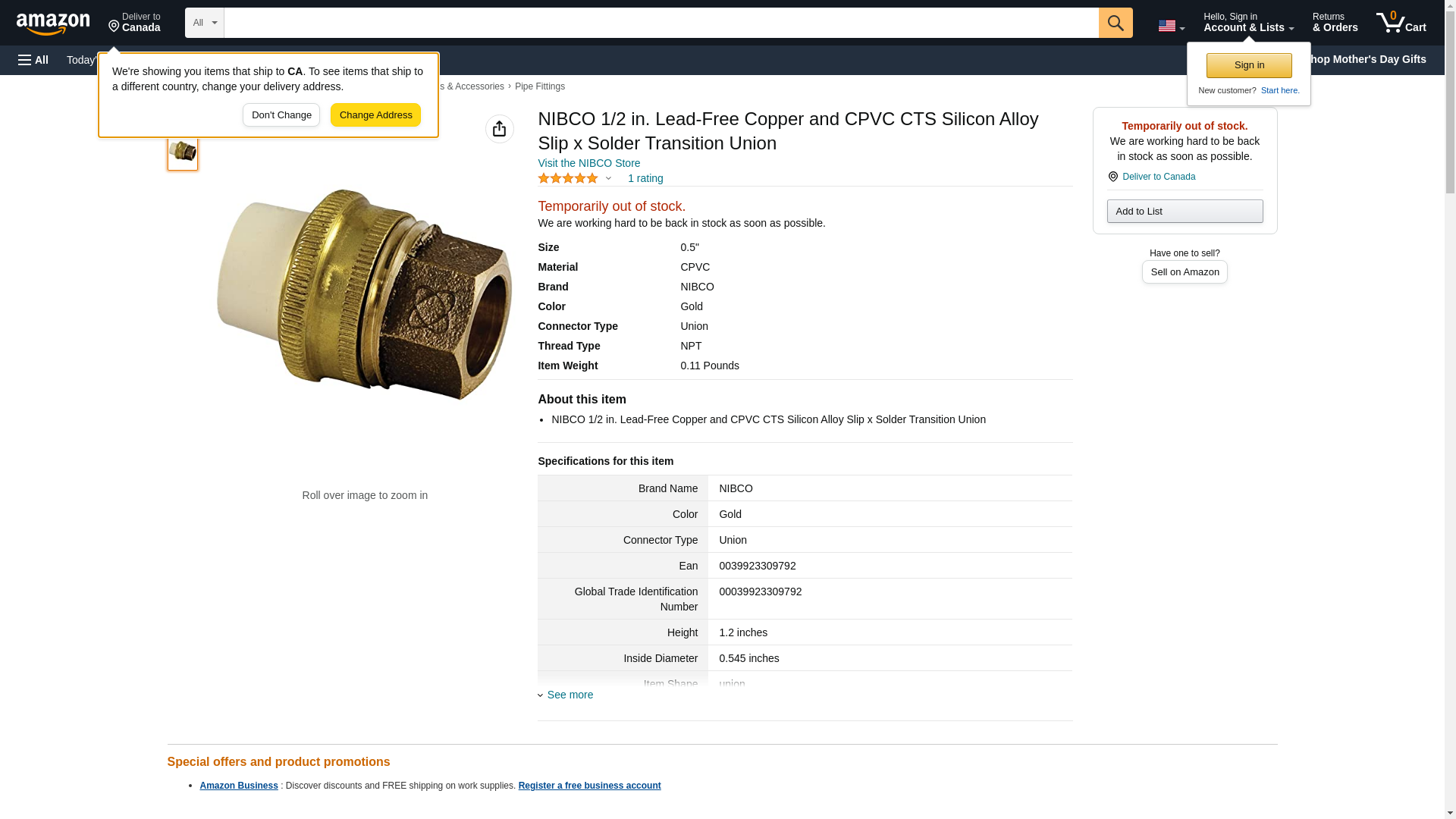NIBCO 1/2 in. Lead-Free Copper and CPVC CTS Silicon Alloy Slip x Solder Transition Union