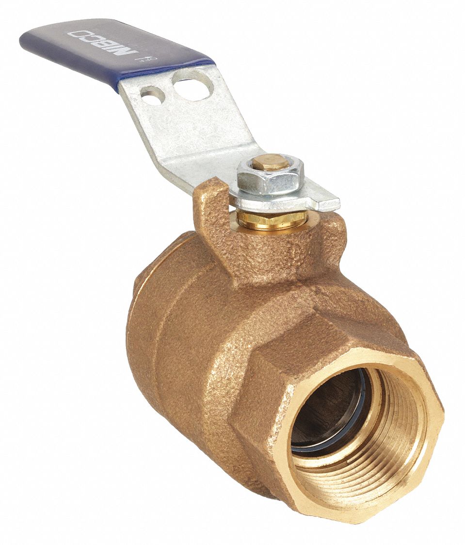 'Ball Valve, Body Material Bronze, Body Style Inline, 2-Piece, Pipe Size 1-1/2 In., Connection Type FNPT x FNPT, Full Port, Max. Pressure 600 psi CWP, Max. Steam Pressure 150 psi WSP, Temp. Range -20 Degrees to 400 Degrees F, Ball Material Chrome Plated Brass, Seat Material RPTFE, Stem Type Blowout Proof, Handle Type Lever, Handle Material Zinc Plated Steel Clear Chromate Plastisol Coated, Stem Material Silicon Bronze, Body Seal Material PTFE'