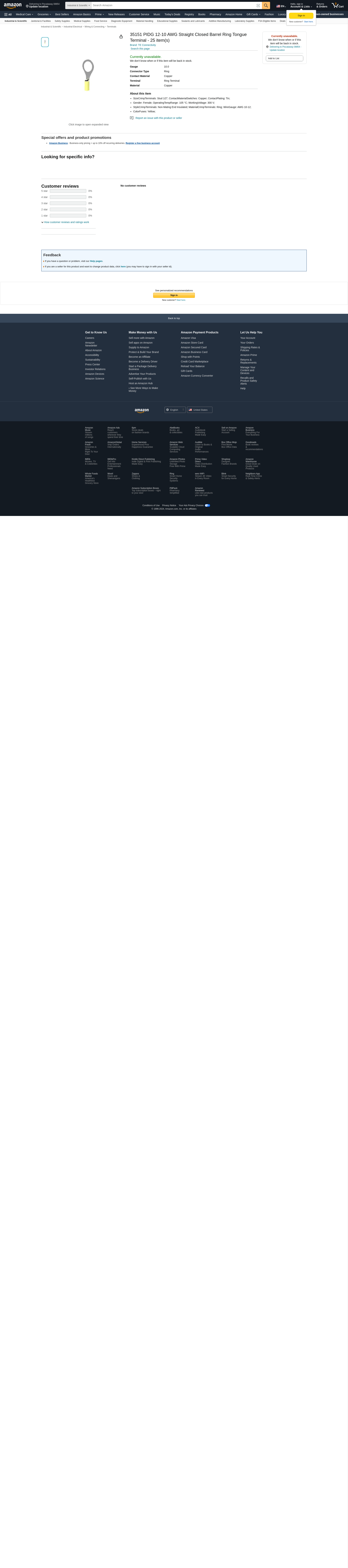 TE CONNECTIVITY 35151 PIDG 12-10 AWG Straight Closed Barrel Ring Tongue Terminal - 25 item(s)