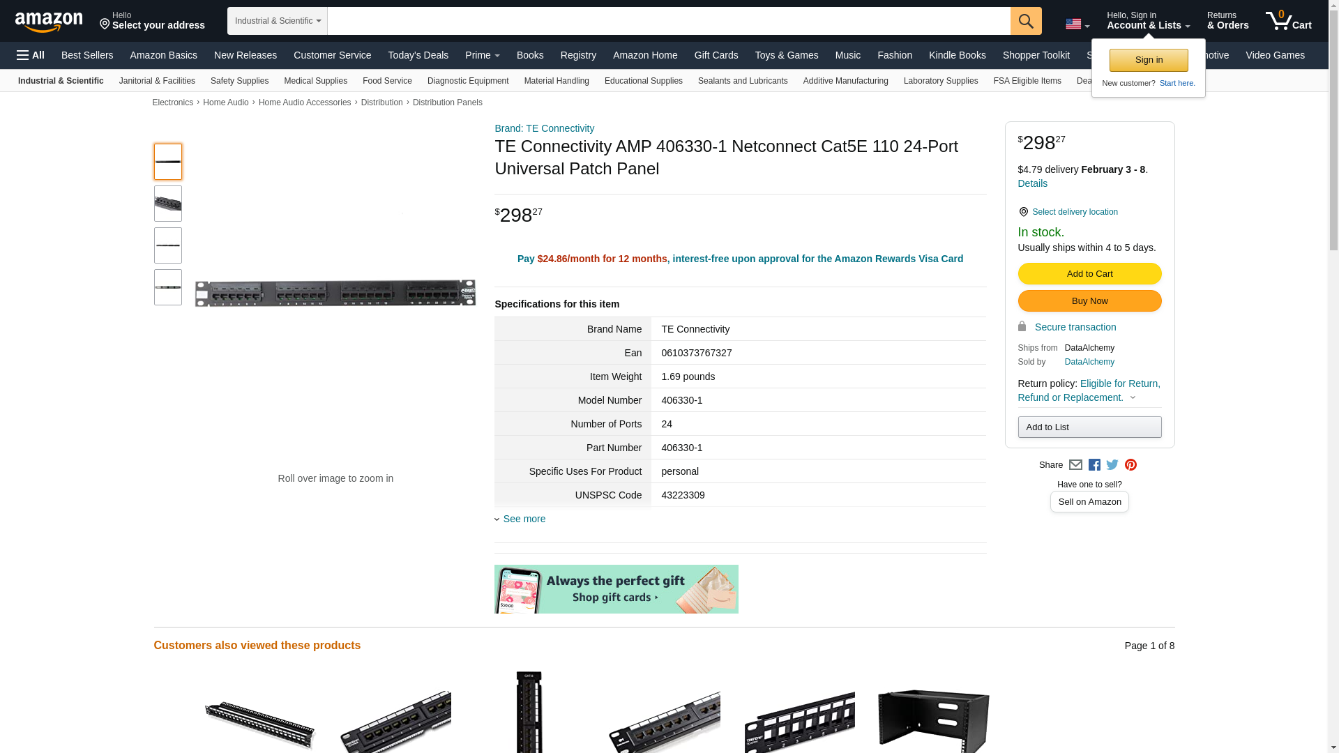 TE Connectivity 406330-1 Ethernet & Telecom Connectors PNL ASY,24P,RJ45,UNV WRG,CAT5E