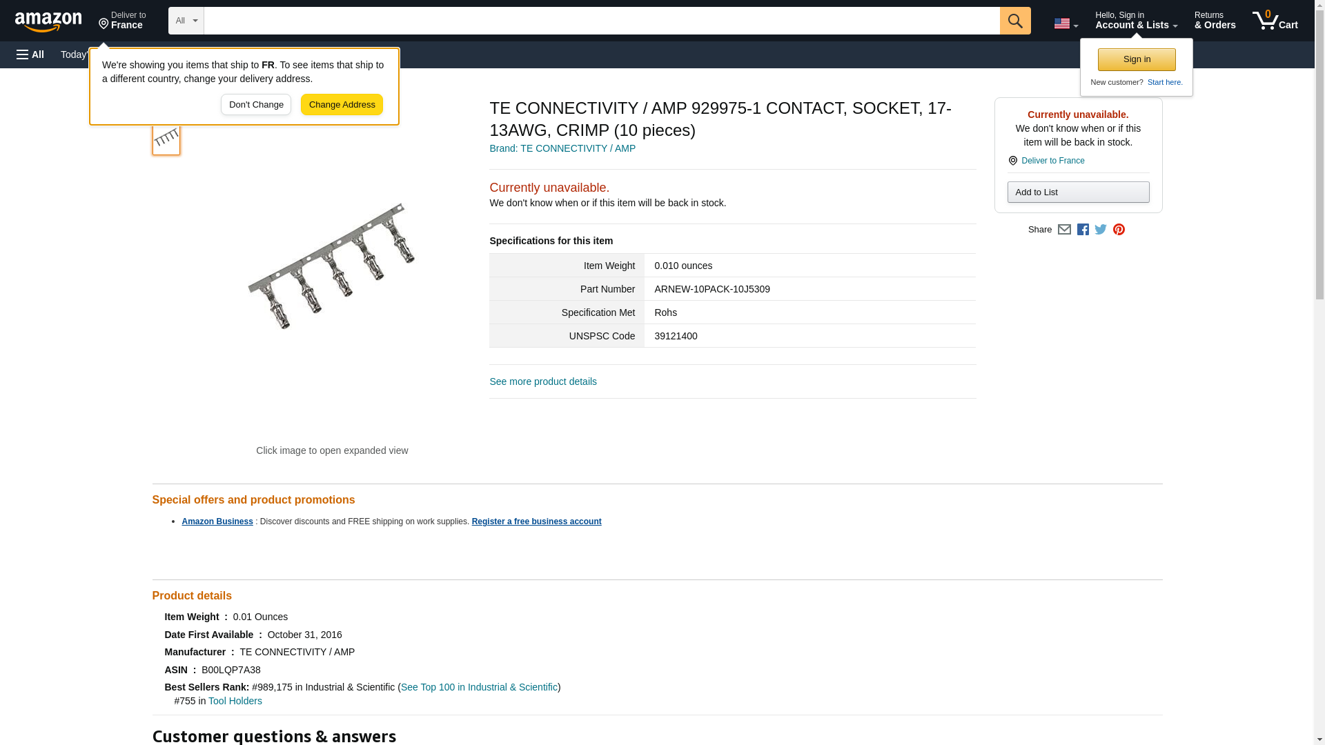 | Waldom | TE CONNECTIVITY 929975-1 | 3000 | 3000 | 3000 @ $0.12, 201000 @ $0.08 | |