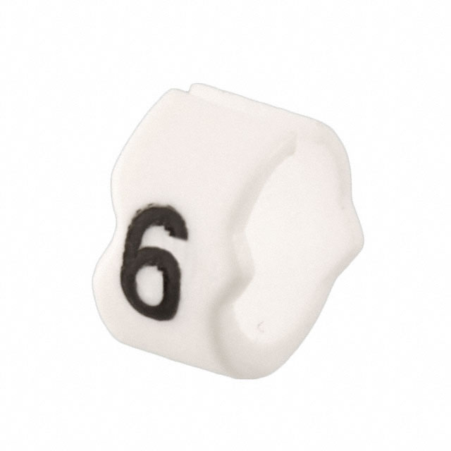 | Feature | <b>Minimum Quantity:</b> 1 <b>Packaging:</b> 30 per Wand; 10 Wands per Pkg <b>Series:</b> Snap-On <b>Type:</b> Wire Marker, Clip-On <b>Cable Diameter:</b> 0.10" ~ 0.14" (2.6mm ~ 3.5mm) <b>Legend:</b> 6 <b>Color:</b> White <b>Material:</b> Polyoxymethylene |