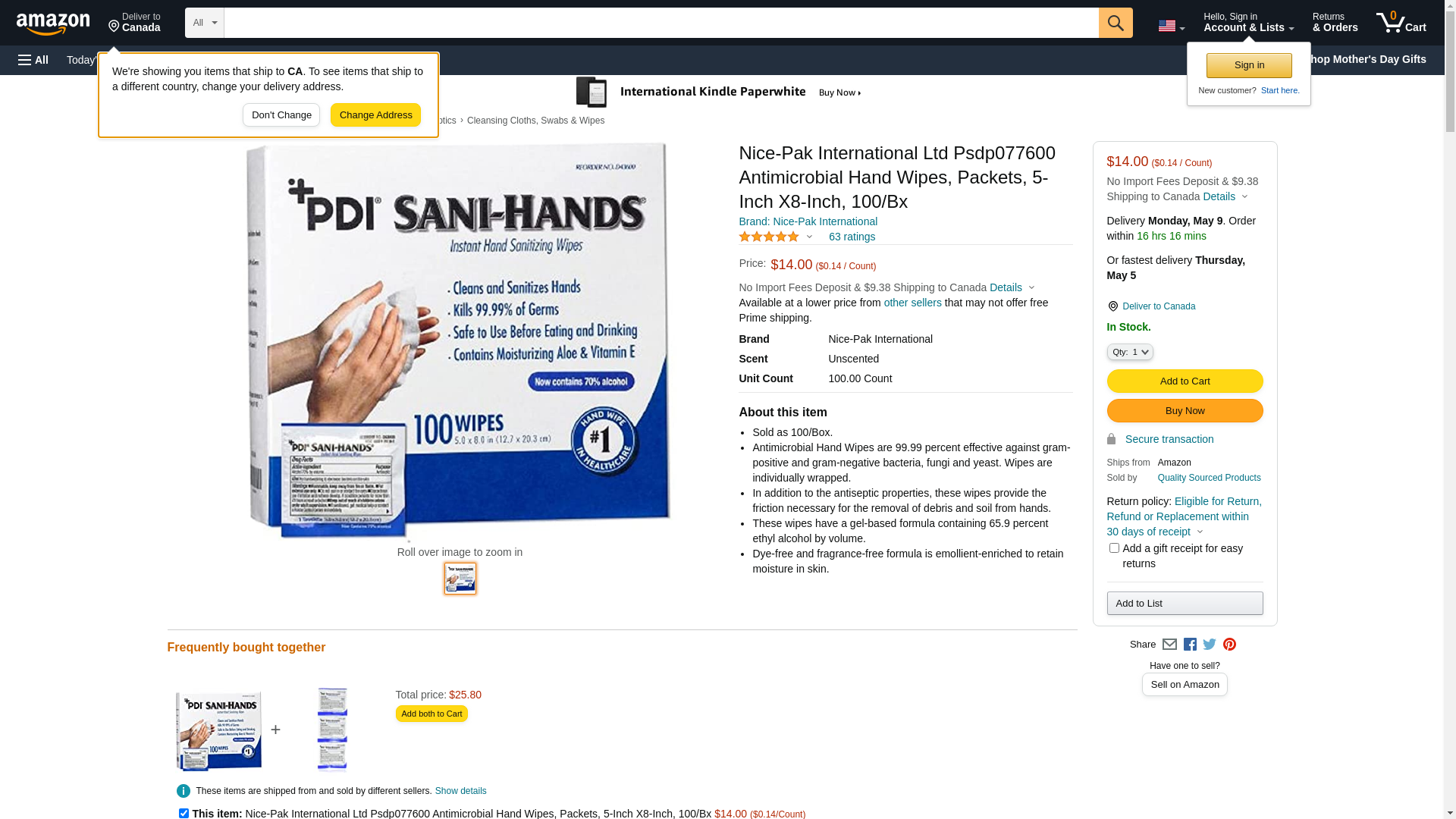 Unimed Nice-Pak International Ltd PSDP077600 Antimicrobial Hand Wipes, Packets, 5"x8", 100/BX