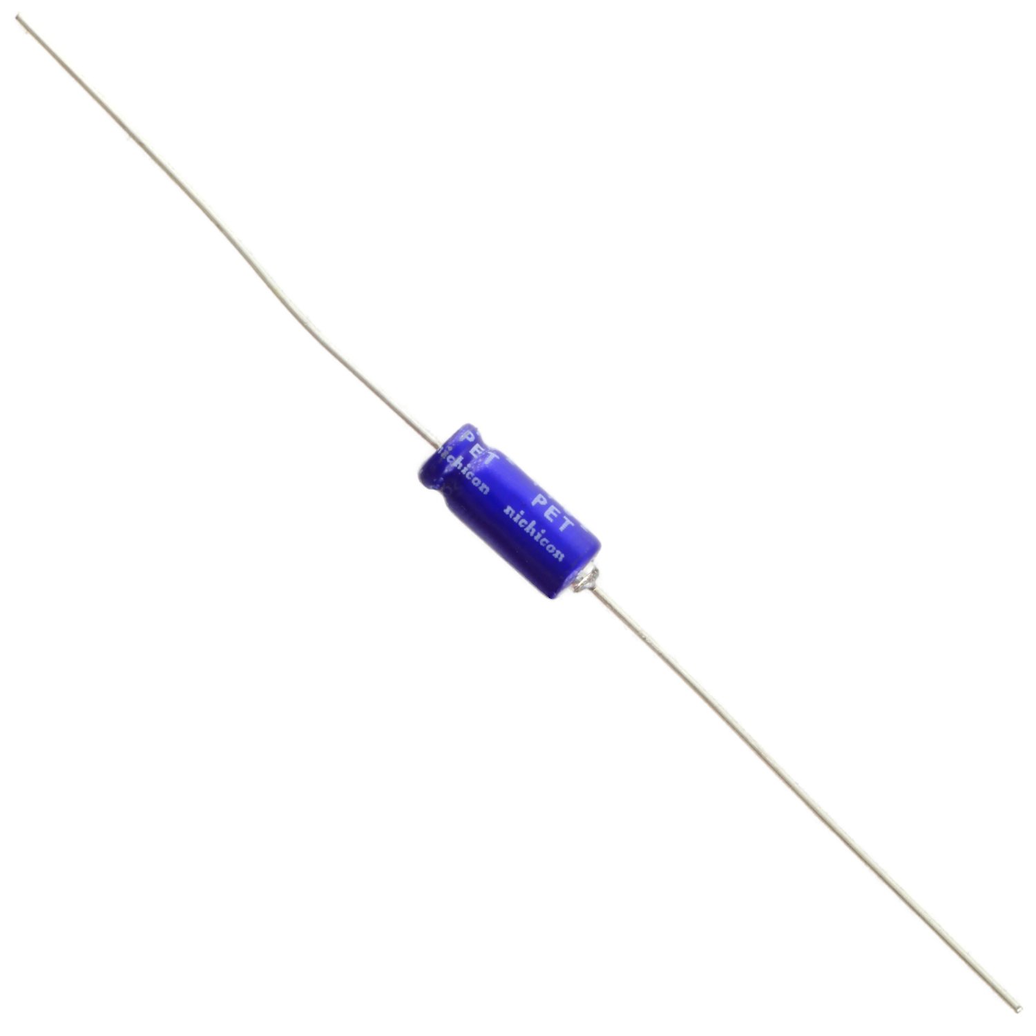 Brand new fresh stock Nichicon VX series axial electrolytic capacitor. Guaranteed genuine and never new old stock. Great for projects, repairs, DIY, industrial and more. Capacitance: 1uf Tolerance: 20 % Voltage Rating: 50VDC Body Diameter: 5 mm Body Length: 12 mm Termination: Axial Operating Temperature: + 85 C Packaging: Bulk