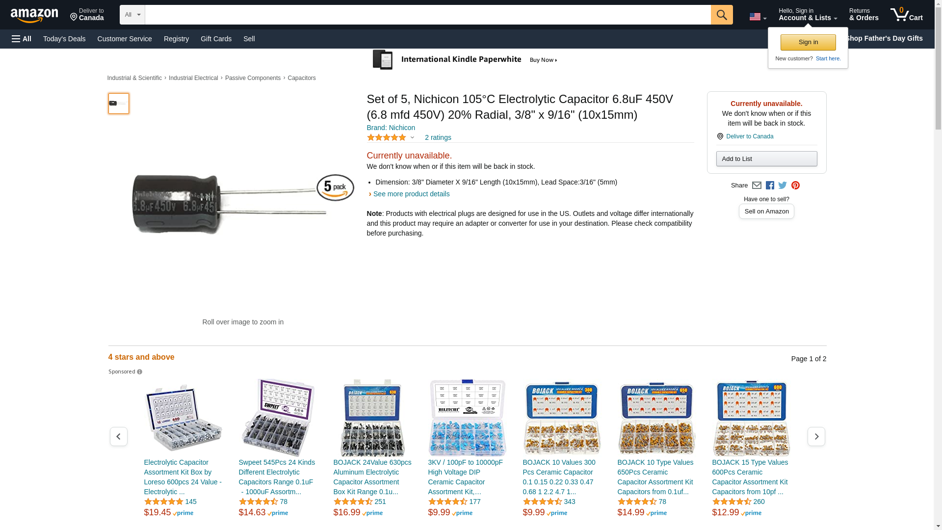 Nichicon Set of 5, 105°C Electrolytic Capacitor 6.8uF 450V (6.8 mfd 450V) 20% Radial, 3/8" x 9/16" (10x15mm)