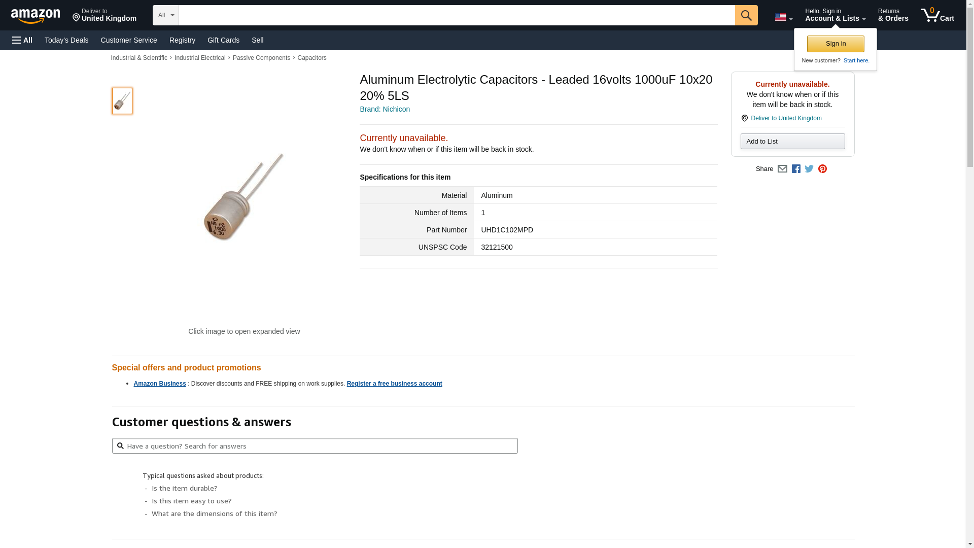 UHD1C102MPD Nichicon | Capacitors | DigiKey