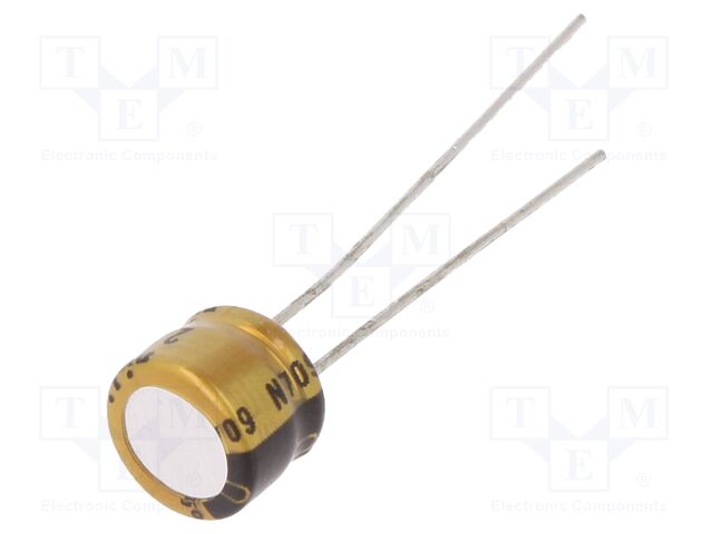 | Feature | Manufacturer: Nichicon Product Category: Radial Aluminum Electrolytic Capacitors RoHS: Capacitance: 22 uF Voltage Rating DC: 35 V Tolerance: 20 % Ripple Current: 46 mA Maximum Operating Temperature: + 85 C Termination Style: Radial Case Diameter: 5 mm Case Length: 11 mm Product: Audio Grade Electrolytic Capacitors Brand: Nichicon Dimensions: 5 mm Dia. x 11 mm L Leakage Current: 7.7 uA |