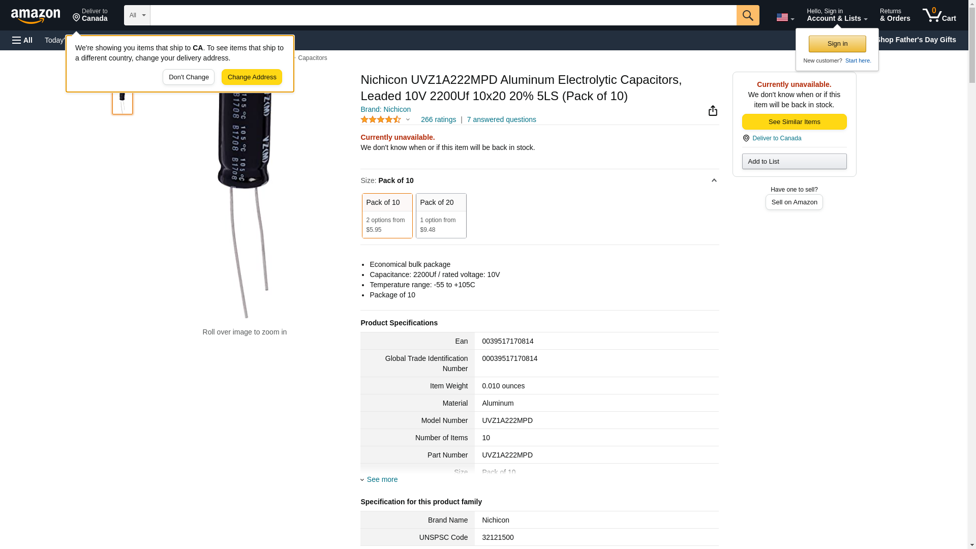![]() swatee.com | UVZ1A222MPD | 1 | 63812 | 1 | 1 @ $1.21 |