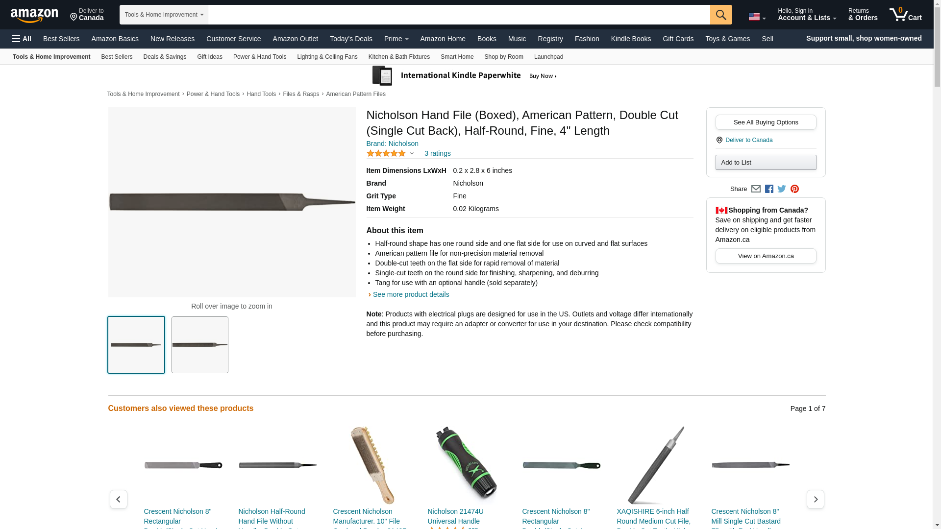 Nicholson Hand File (Boxed), American Pattern, Double Cut (Single Cut Back), Half-Round, Fine, 4" Length