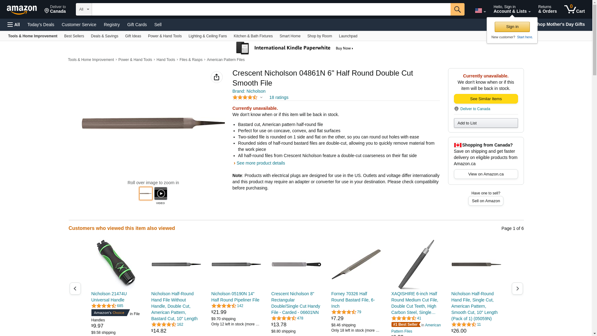 Nicholson Crescent Nicholson 04861N 6" Half Round Double Cut Smooth File