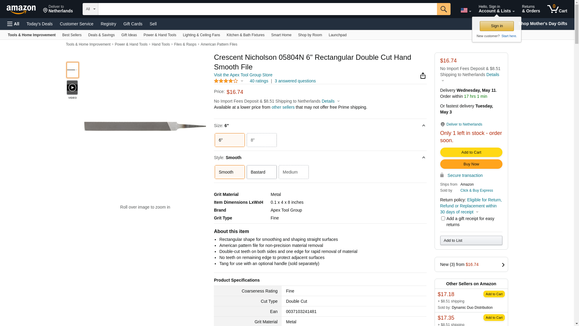 Nicholson 05804N File, 6" Rectangular, Smooth, Double Cut | JensenTools