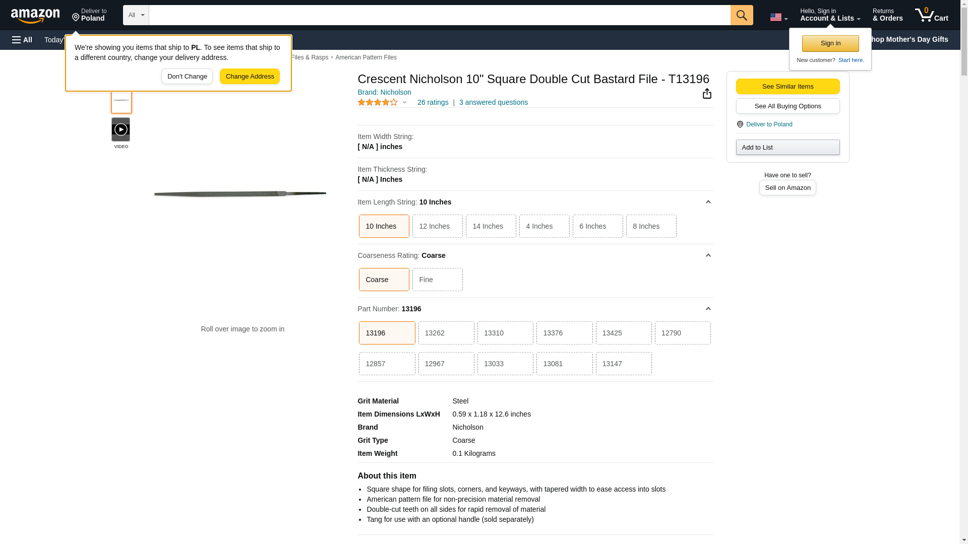 13196 10" Square Bastard File NICHOLSON (13196) (12/Each)