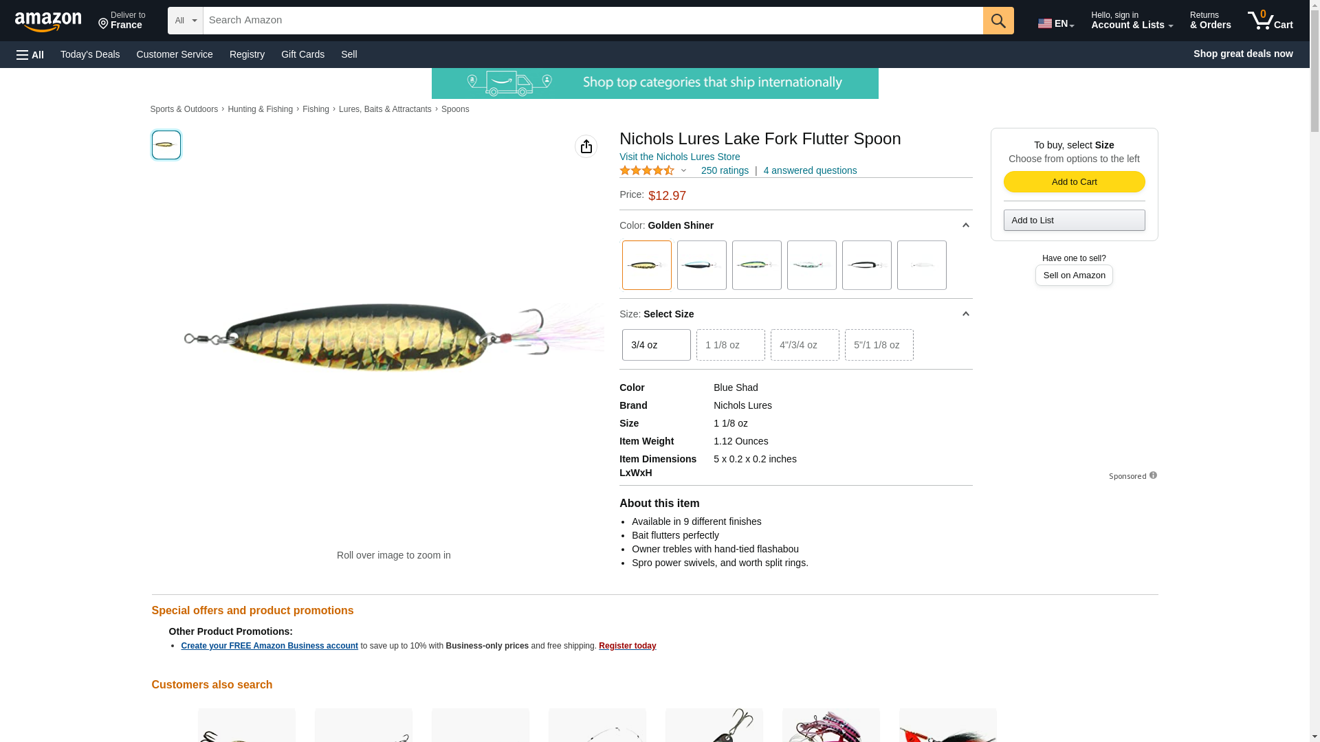 Nichols Lures 4FS13-34 4" Lake Fork Flutter Spoon Golden Shiner, 3/4 oz