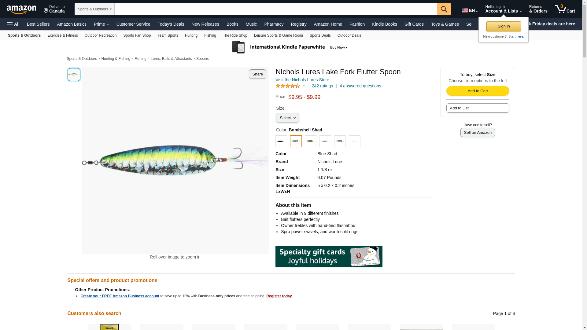 Nichols Lures 4FS14-34 4" Lake Fork Flutter Spoon Bombshell Shad, 3/4 oz