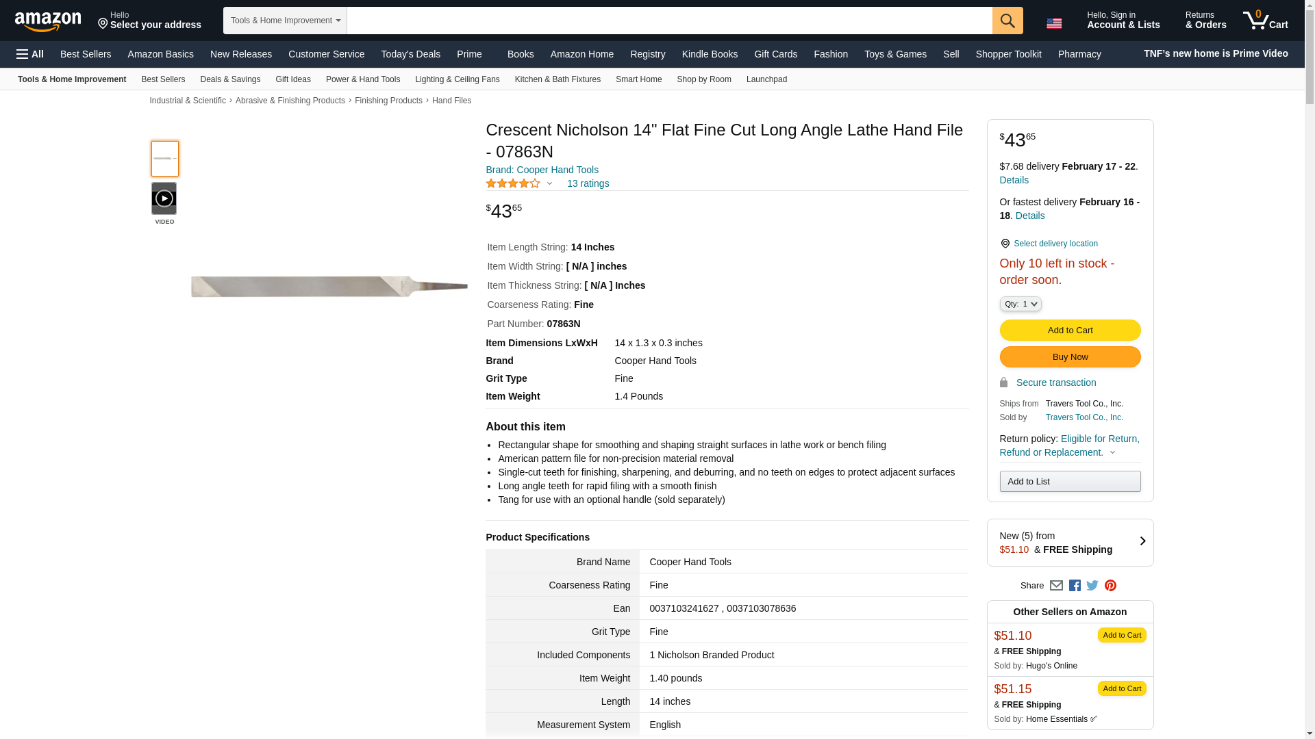 NICHOLSON 07863N - File,14\,Hand La Lathe,Fi"