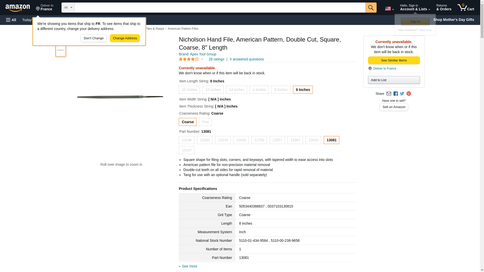 13081 8" Square Bastard File NICHOLSON (13081) (12/Each)