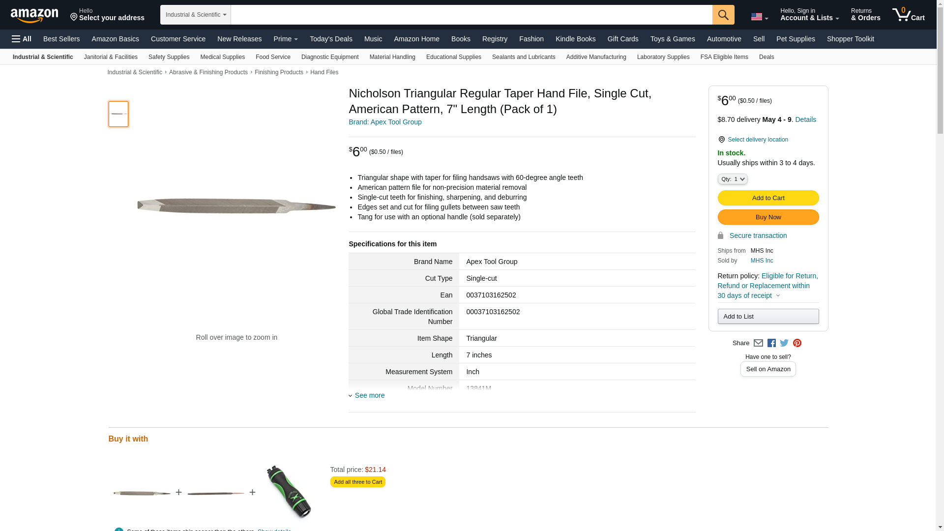 Nicholson Triangular Regular Taper Hand File, Single Cut, American Pattern, 7" Length (Pack of 1)