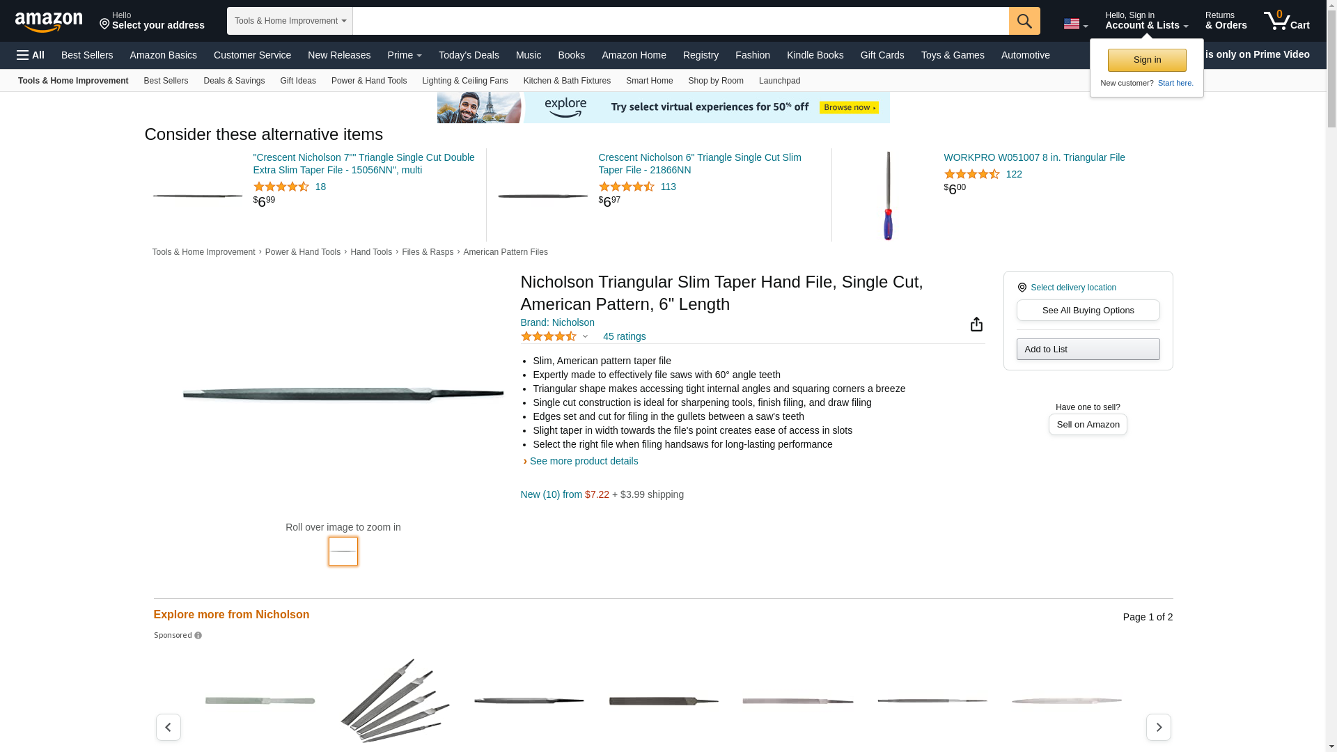 Nicholson Triangular Slim Taper Hand File, Single Cut, American Pattern, 6" Length