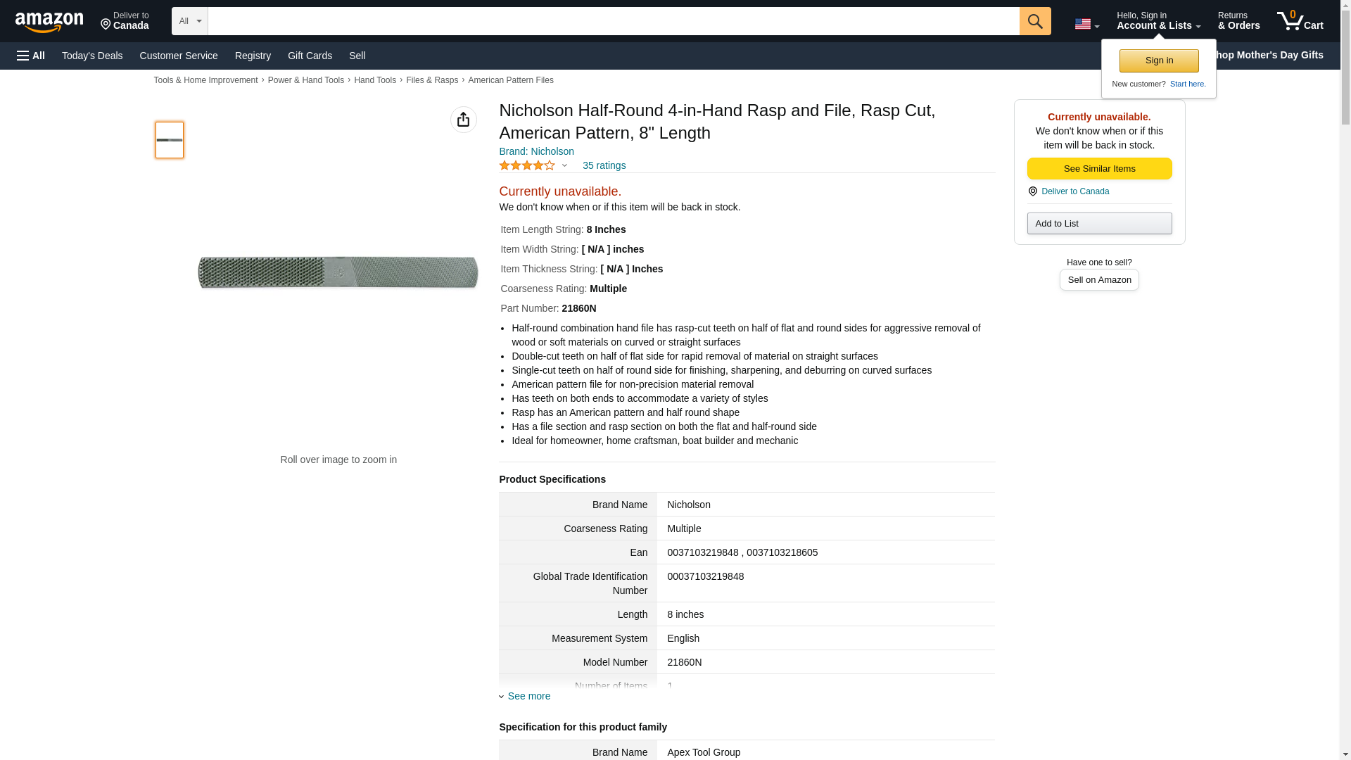 Nicholson Tools 21860N Carded Files