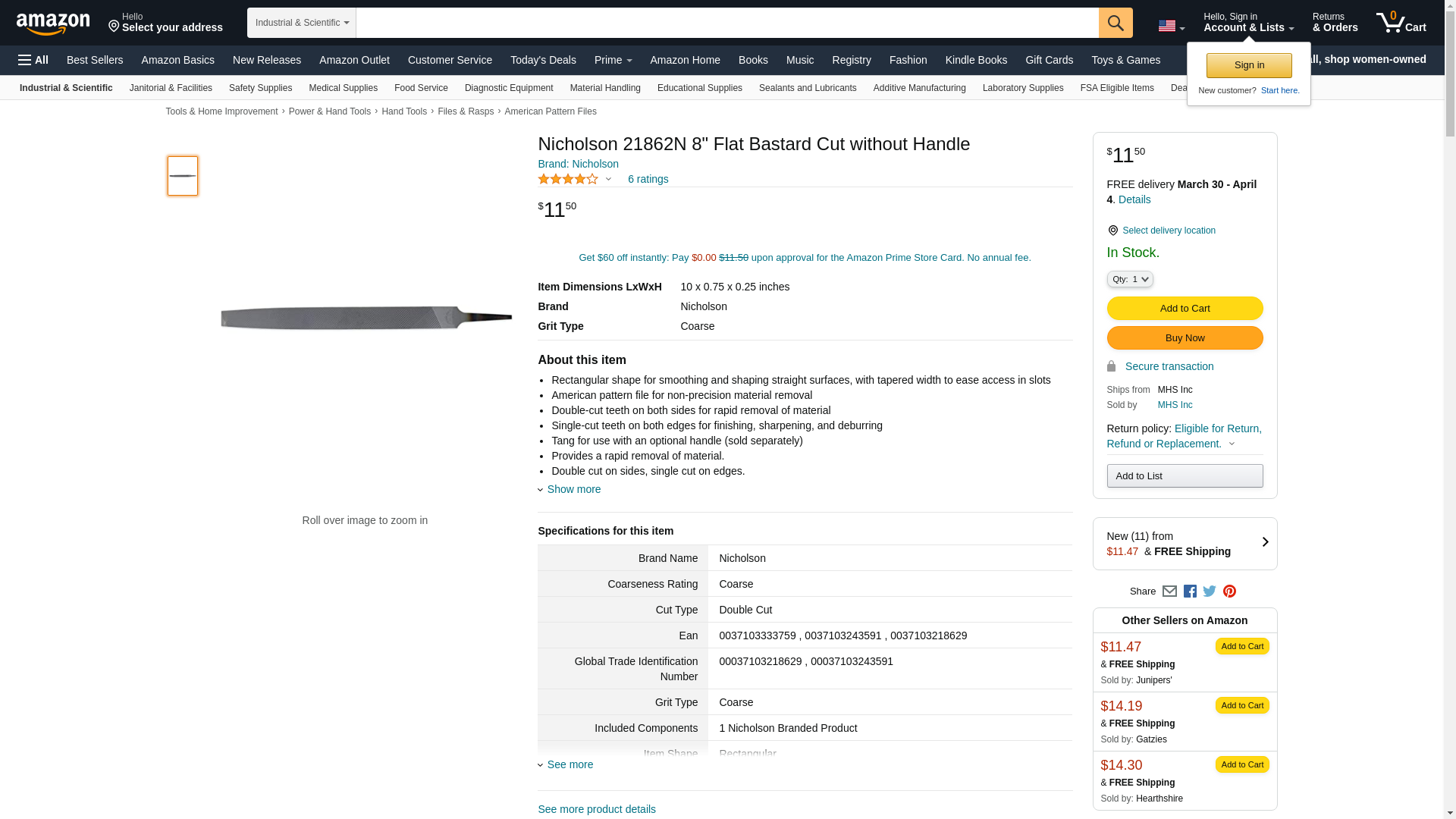 Nicholson 21862N 8" Flat Bastard Cut without Handle