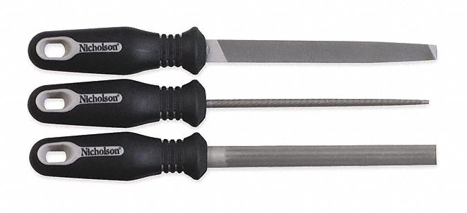 The Nicholson 3-Piece File set contains an assortment of files that are great for both home and professional use. All files come with rubber-coated handles for easy use with a non-slip grip. Files come in a pouch for easy storage and organization.