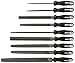 - Set of 9 American pattern hand files includes taper, flat, mill, half-round, and round cross-section files