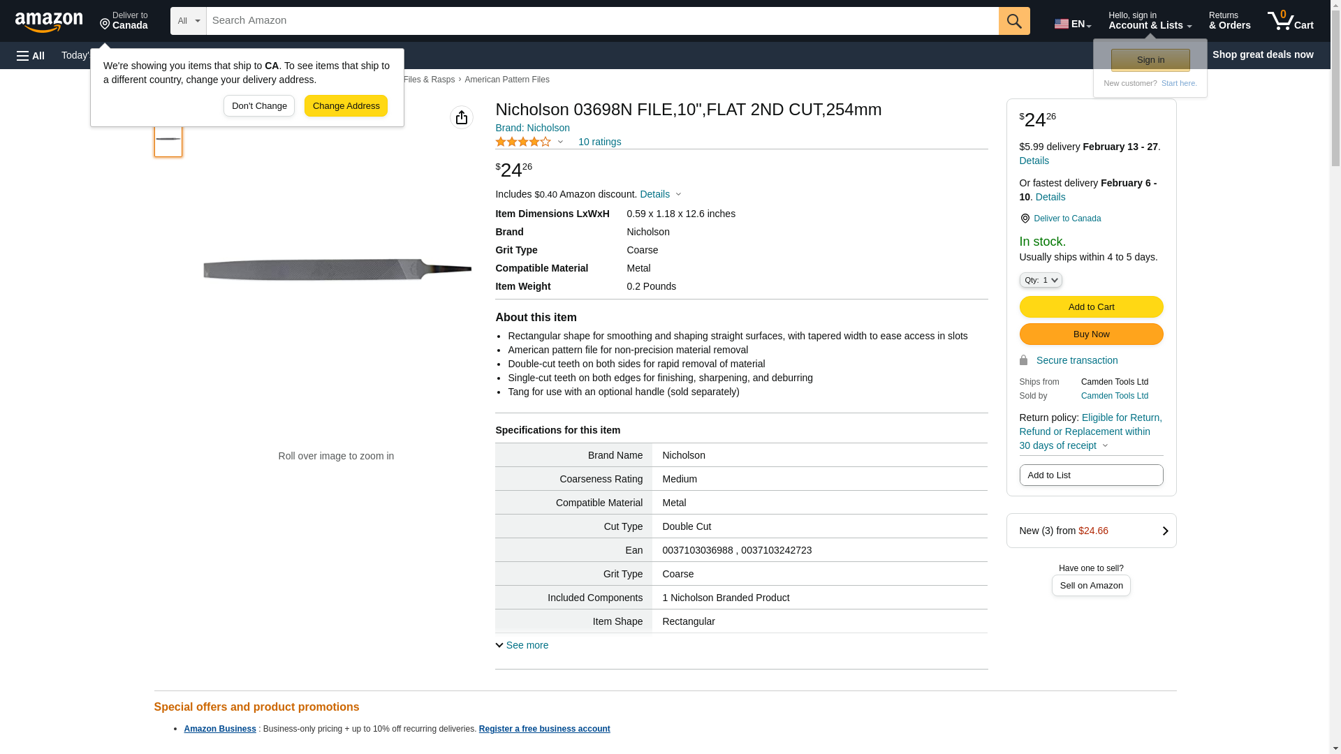 Nicholson 03698N 03698 FILE 10" FLAT 2ND CUT COOPER